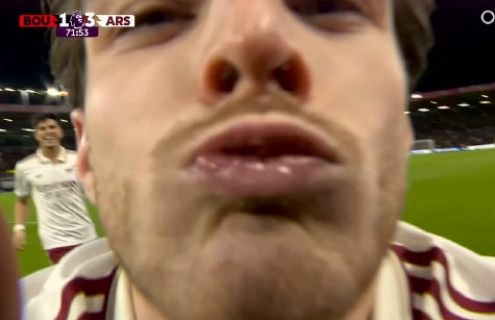01月04日讯 英超第20轮,阿森纳客场3-2伯恩茅斯,赖斯在攻入第二球时答应地亲吻录像机镜头庆祝。赛后,在接纳《太空体育》采访时,雷德克纳普与赖斯回忆此事。