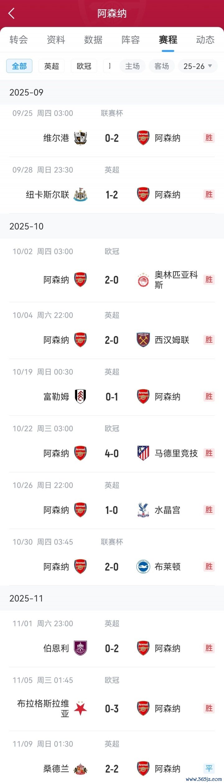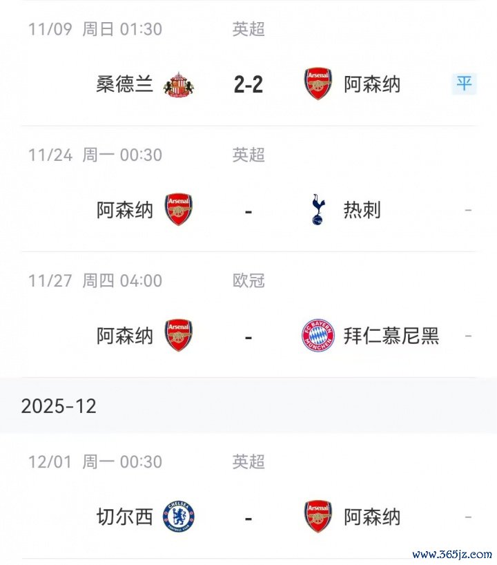阿森纳以前赛程↓