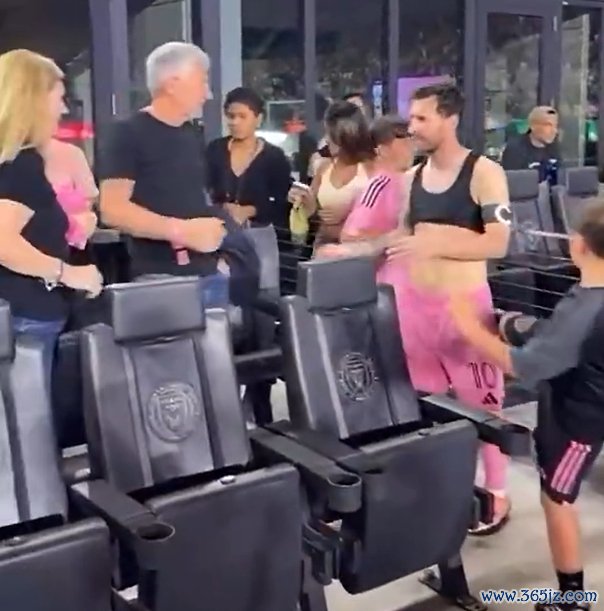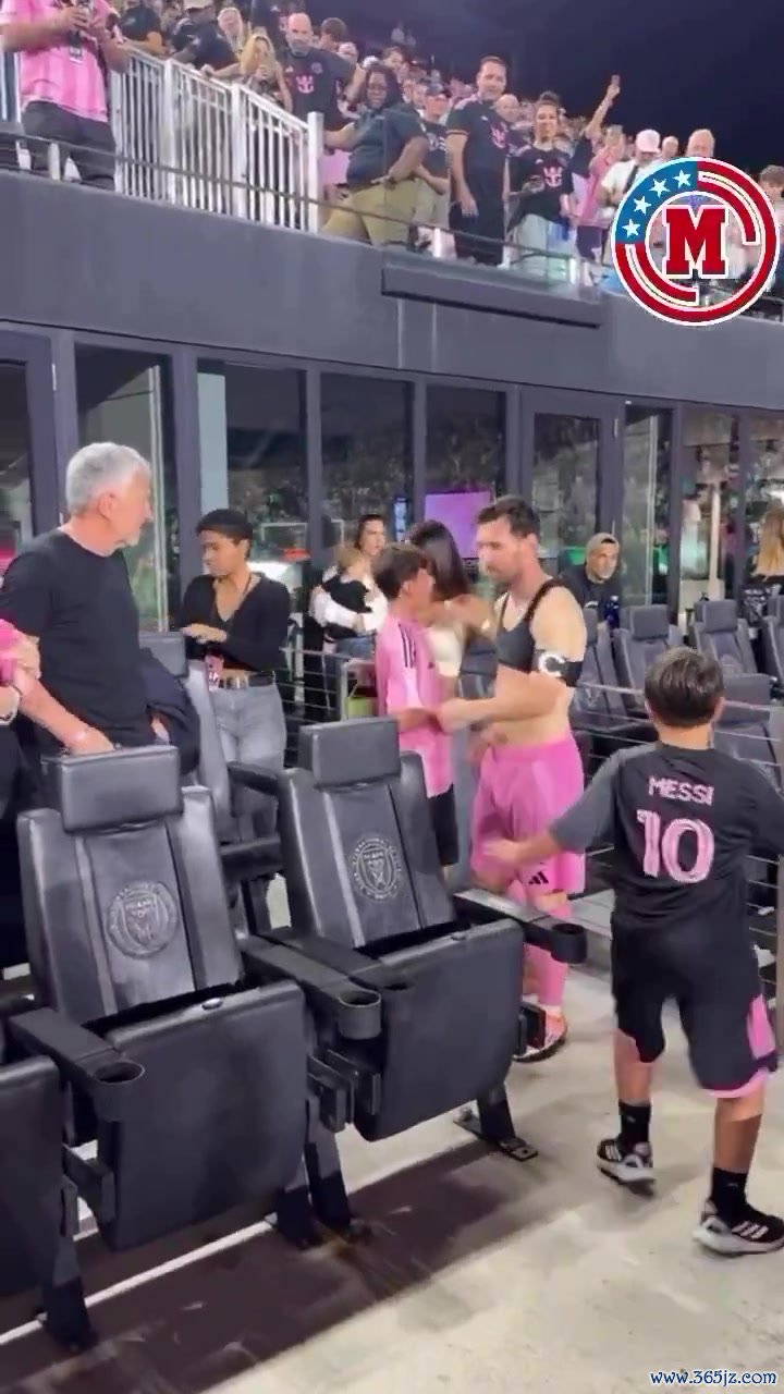 赛后在场边梅西与家东说念主聊着,梅西的男儿马特奥酝酿后一脚踢向梅西。