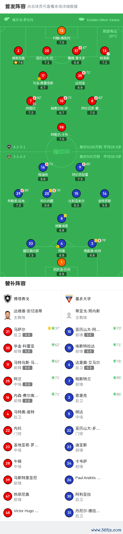 第1分钟,博塔弗戈球员特莱斯助攻阿图尔打入一球。