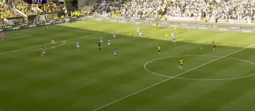第35分钟,赖因德斯挑传,刘易斯助攻哈兰德破门,曼城1-0狼队