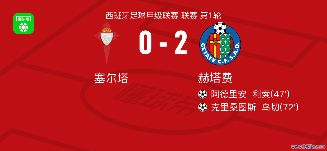 北京时刻8月17日,西班牙足球甲级联赛第1轮,塞尔塔主场迎战赫塔费。比赛中,赫塔费球员阿德里安-利索接队友克里桑图斯-乌切的助攻首开记录;随后,克里桑图斯-乌切再由伊斯梅尔-贝胡沙助攻立功。最终,赫塔费以2比0的比分客场取胜。