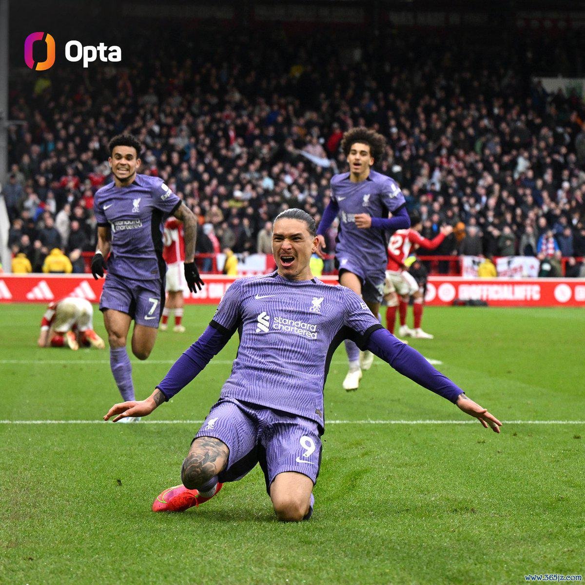 努涅斯行将离开利物浦并转投利雅得月牙。据统计,自2022年8月献技英超首秀以来,努涅斯打入3粒第90分钟后制胜球,为同时最多。