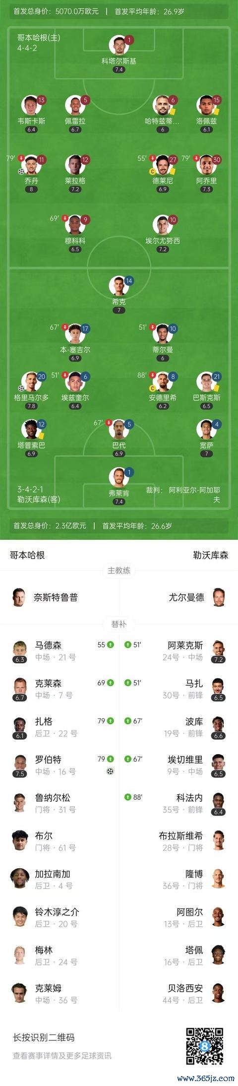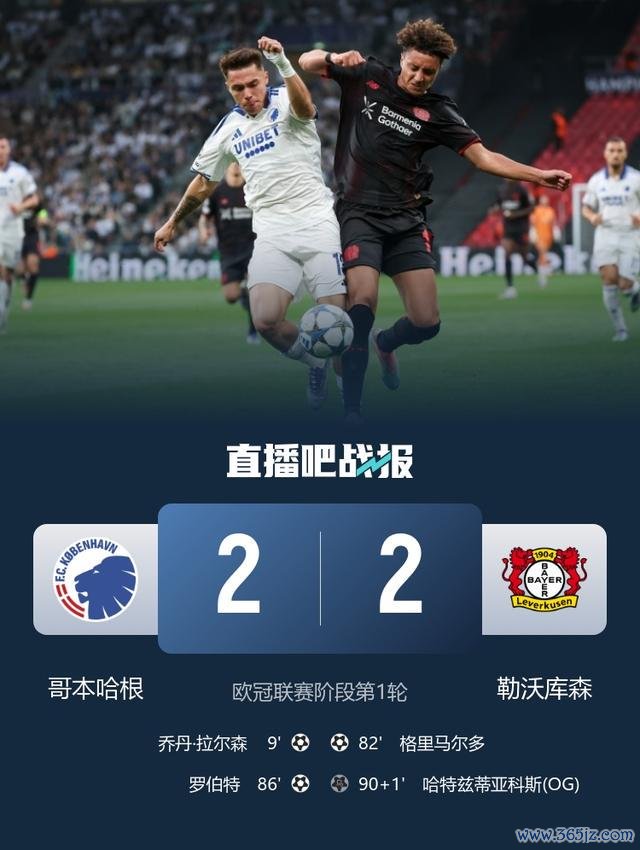 全场比赛死心,哥本哈根2-2勒沃库森。