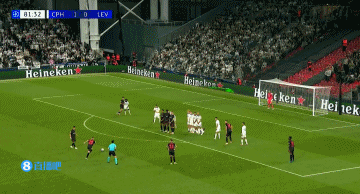 第82分钟,勒沃库森弧顶前沿任性球契机,主罚直挂球门死角,勒沃库森1-1哥本哈根。↓