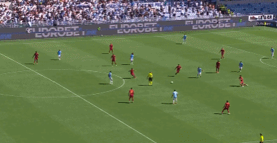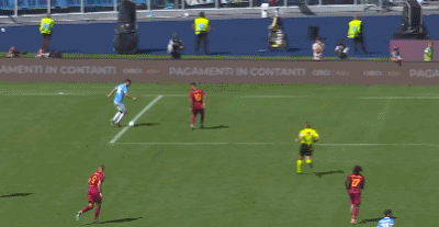 第45+2分钟,差之豪厘,罗马禁区后点推射被扑