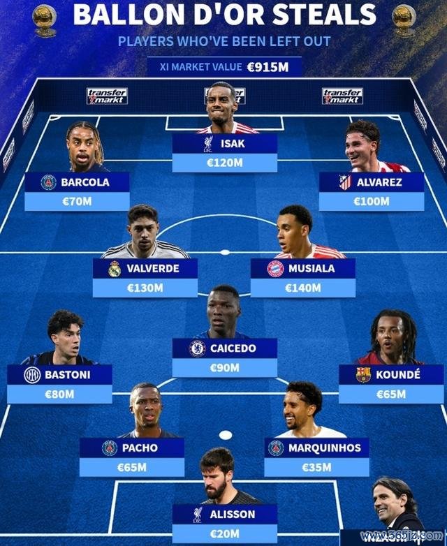 时尚:巴尔科拉(巴黎 7000万欧)、伊萨克(纽卡、利物浦 1.2亿欧)、阿尔瓦雷斯(马竞 1亿欧)