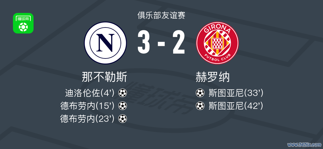 北京时代8月10日,在一场俱乐部友谊赛中,与张开较量。比赛中,那不勒斯球员迪洛伦佐领先粉碎僵局,随后德布劳内阐扬出色,连入两球,为球队扩大跨越上风。赫罗纳方面,斯图亚尼不异施展拉风,两次攻破敌手球门,勤快为球队追分。最终,那不勒斯以3比2的比分驯服赫罗纳。