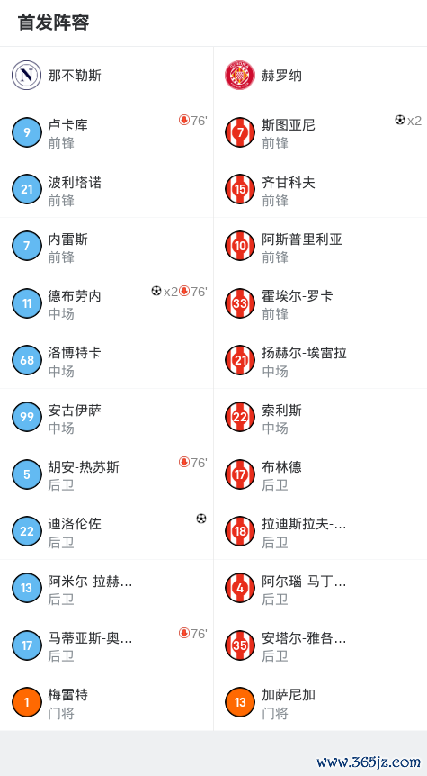 第23分钟,那不勒斯球员德布劳内打入一球。