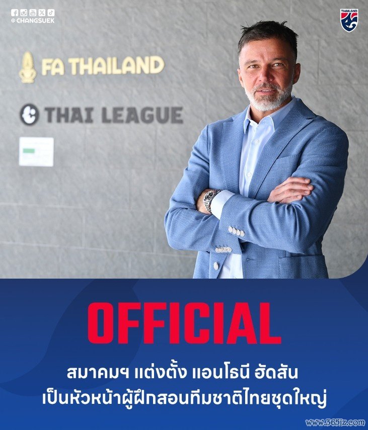 好意思国东谈主安东尼-哈德森(Anthony Hudson)被厚爱任命为泰国国度队新任主解说。44岁的哈德森曾合手教过巴林队、新西兰队、好意思国U20国度队,他还担任过好意思国队助教和代理主解说,指引好意思国队参预了5场比赛。