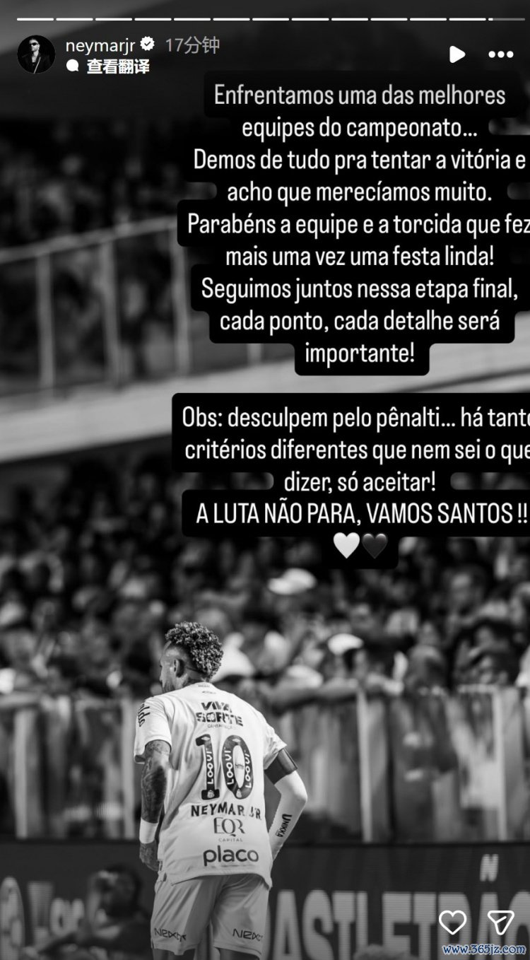 赛后内马尔在外交媒体上写说念:“咱们对阵的是联赛中最强的球队之一,咱们拼尽全力求取顺利,我觉得咱们配得上更好的后果。为球队和再次营造出妖魔主场氛围的球迷们喝彩!让咱们在联赛的终末阶段链接并肩接触,每分每秒、每个细节齐至关进军!”