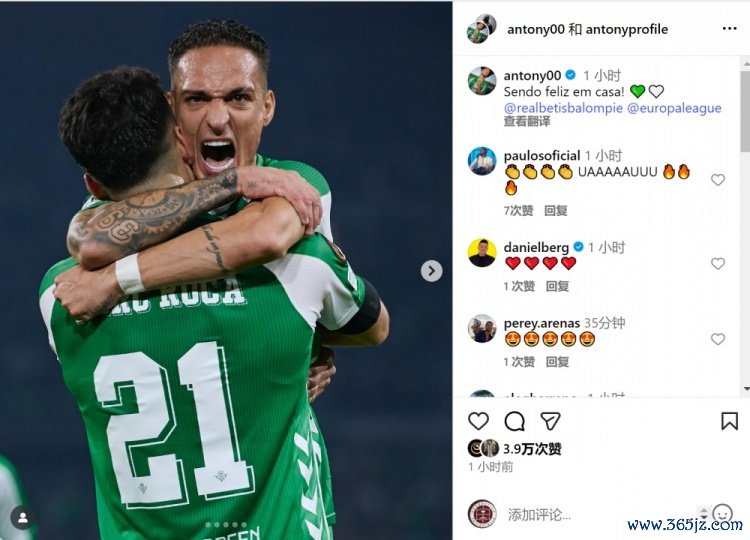 安东尼赛后在酬酢媒体上晒出庆祝进球的相片,配文:“在主场取胜太容许了!”