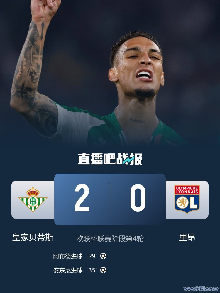 11月07日讯 欧联杯联赛阶段第四轮比赛,皇家贝蒂斯2-0校服里昂,本场比赛贝蒂斯时尚安东尼打进一记精彩的挑射。