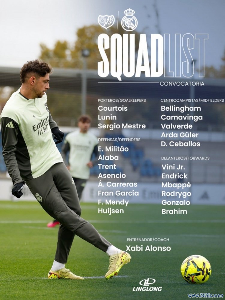 11月8日讯 本轮西甲皇马将在客场对阵巴列卡诺,球队官方也公布了本场大名单,琼阿梅尼缺席,具体如下: